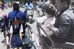 दिव्यांग पिता ने ट्राई साइकिल से बच्ची को पहुंचाया स्कूल
