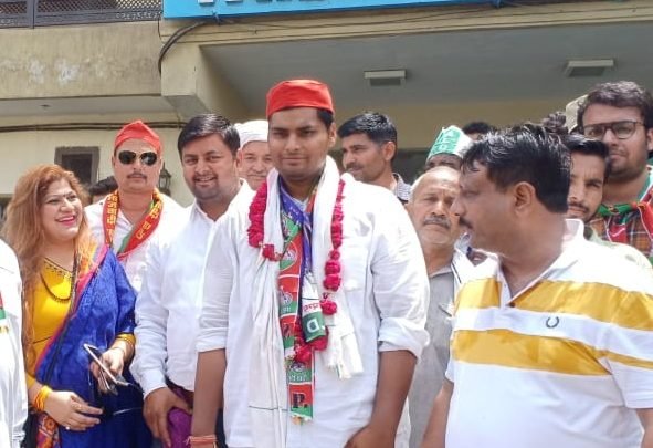 जनता ने प्रत्याशी सूरज शर्मा को फूलो की माला डालकर सम्मान दिया
