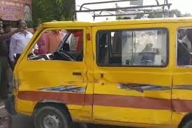 रोडवेज बस ने स्कूल वैन को मारी टक्कर