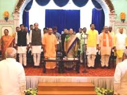 यूपी के मुख्यमंत्री योगी आदित्यनाथ के मंत्रिमंडल का विस्तार हो गया है। बुधवार को राजभवन में शपथ ग्रहण समारोह का आयोजन किया गया। कुल 23 विधायकों ने मंत्री पद की शपथ ली। इनमें से 18 नए मंत्री सरकार में शामिल हुए हैं। जबकि पांच मंत्रियों का प्रमोशन हुआ है। इस दौरान छह कैबिनेट, छह स्वतंत्र प्रभार व 11 राज्यमंत्रियों ने शपथ ली। सभी नए मंत्रियों को राज्यपाल आनंदी बेन पटेल ने शपथ