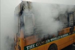 कानपुर the Ganges world स्कूल की चलती बस में लगी आग ड्राइवर की सुज बुज से टला हादसा सभी बच्चों को सुरक्षित बाहर निकाला 20 से 30 बच्चे थे सवार और स्कूल प्रसासन की बड़ी लापरवाही की वजह से मौत के मुंह मे जासकते थे कई बच्चो की जान…. स्कुल प्रसासन ने मीडिया को कब्रेज से रोका और एक मैडम ने तो ये भि कहा के मेरे हसबेंड भि लगा के घूमते मीडिया का लोगो और कि मिडिया से अभर्त्ता भी स्कुल प्रसासन