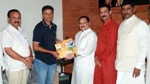 भाजपा के कार्यकारी अध्यक्ष जेपी नड्डा ने रविवार को क्रिकेटर राहुल द्रविड़ से बंगलूरू में उनके आवास पर मुलाकात की। पार्टी के जन संपर्क अभियान के तहत इस मुलाकात के दौरान भाजपा के राष्ट्रीय महासचिव मुरलीधर राव भी साथ रहे। राव ने अपने आधिकारिक ट्विटर अकाउंट से एक फोटो पोस्ट की जिसमें दोनों के साथ कर्नाटक के पूर्व मुख्यमंत्री डीवी सदानंद गौडा भी नजर आ रहे हैं। राव ने ट्वीट कर लिखा ‘ बेहद प्रतिभावान, सम्माननीय और द वॉल के नाम से मशहूर क्रिकेटर राहुल द्रविड़ से बंगलूरू में मुलाकात की। इस दौरान पार्टी के कार्यकारी अध्यक्ष जेपी नड्डा भी हमारे साथ थे।’