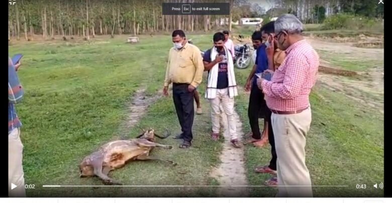 तालाब में उतराता मिला हिरन, मचा हड़कंप