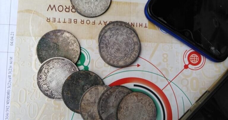 सिक्को की जानकारी के बाद पहुची पुलिस, 9 चांदी के सिक्खों को कब्जे में लिया ,पुलिस ने 1800 ई. पुराने सिक्को को जानकारी पुरातत्व विभाग को दी,मौदाहा कोतवाली क्षेत्र का मामला