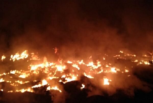 दूर दूर तक फैलीं आग की लपटें, दमकल की एक दर्जन गाड़ियों को मौके पर बुलाया गया।