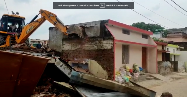 तरह से कब्जा करने वालो की इमारतों को जेसीबी द्वारा ढहा दिया गया ।