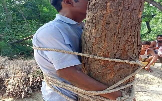 युवक को पेड़ में बांधकर पीटा मौरंग चोरी के आरोप में युवक को बनाया बंधक