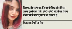 चुटकियों में स्लिम लुक पाना चाहती हैं तो शेप वियर जरूर इस्तेमाल करें। किसी भी ड्रेस के नीचे इसे पहनने से फिगर ठीक दिखता है। साड़ी के नीचे पेटीकोट की जगह साड़ी शेपवियर पहनें। शेप वियर अलग-अलग तरह के और कई फैब्रिक में आते हैं। शेप वियर का फैब्रिक ऐसा चुनें जो स्किन के लिए नुकसानदायक ना हो।