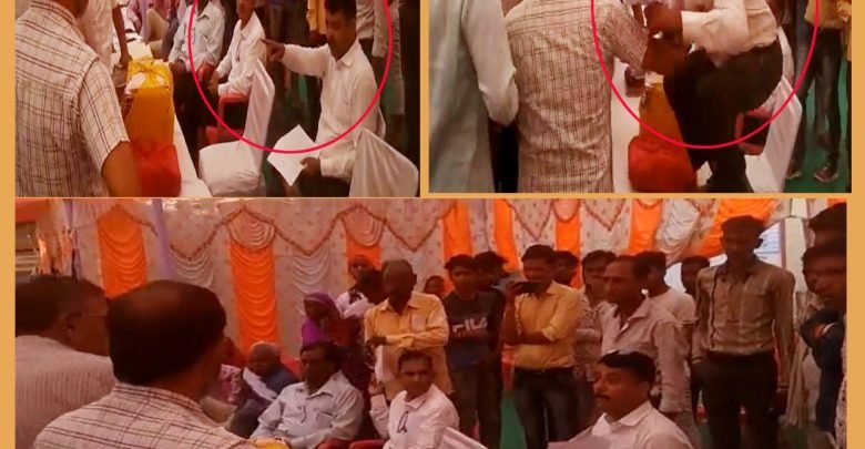 शिविर लगवाए हैं। लोग यहां अपनी समस्याएं और फरियाद लेकर इस उम्मीद के साथ आते हैं कि अधिकारी उसका समाधान करेंगे। लेकिन भीलवाड़ा जिले के जहाजपुर उपखंड में लगाए गए इस समस्या समाधान शिविर में ऐसा नजारा देखने को मिला जिसने सभी को हैरान कर दिया। कुचलवाड़ा गांव के रहने वाले फरियादी खेमराज मीणा यहां अपने पोते का जन्म प्रमाण पत्र बनवाने आए थे। उन्होंने तहसीलदार के सामने अपनी बात रखी…लेकिन इस बीच किसी बात को लेकर दोनों के बीच कहासुनी हो गई और जरा देखिए तहसीलदार कैसे टेबल पर उछलकर फरियादी को मारने दौड़ पड़े। वहां मौजूद लोगों ने बीच बचाव किया और तहसीलदार का गुस्सा शांत कराया।बताया जा रहा है कि फरियादी ने आवेदन फॉर्म में फोटो चिपकाने को लेकर सवाल किया था। उनका कहना था कि फार्म में ऐसा कॉलम मौजूद नहीं है। इसी बात को लेकर दोनों में इतनी बहस हो गई और तहसीलदार मुकुन्द सिंह आपा खो बैठे। सामने रखी टेबल पर छलांग लगाकर फरियादी को मारने दौड़ पड़े।