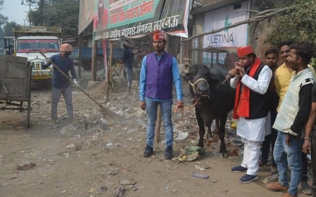 नगर पालिका के विरोध सपाइयों ने किया विरोध प्रदर्शन सपाइयों ने भैंस के आगे बीन बजाकर किया प्रदर्शन