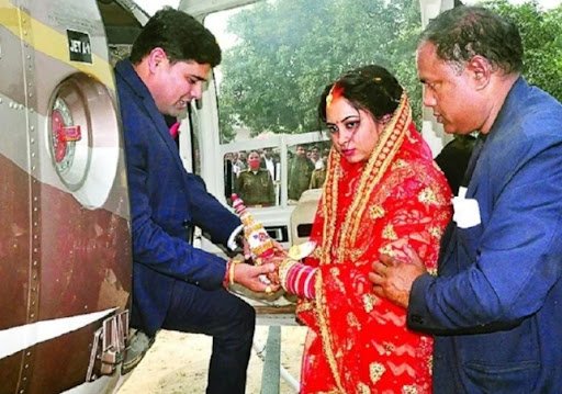 तब से ही पिता कहा करते थे कि उनकी लाडली हवा में उड़कर अपने ससुराल जाएगी । इस पिता के सपने को पूरा करने के लिए स्थानीय प्रशासन भी साथ आया। इसके लिए प्रशासन ने गांव में हेलीपैड बनवा दिया। प्रतापगढ़ के सदर विकास खंड के सरायसागर गांव की रहने वाली उर्वशी सिंह प्राइमरी की शिक्षिका हैं। उनके पिता विनोद कुमार सिंह भी प्राइमरी स्कूल में शिक्षक हैं। उर्वशी सिंह की शादी लालगंज के रानीगंज कैथौला अर्जुनपुर गांव के रहने वाले इंजीनियर अमित सिंह के साथ तय हुई थी। दोनों की 26 नवंबर को शादी थी। इसके अगले दिन यानी 27 नवंबर को दुल्हन की विदाई हुई। उर्वशी के पिता ने अपनी बेटी की शादी को यादगार बनाने के लिए हेलीकॉप्टर से विदाई की। उन्होंने इसके लिए प्रशासन से अनुमति भी ली थी। शादी के कई दिनों से पहले ही यह खबर इलाके में चर्चा का विषय बनी हुई थी। लोग हेलीकॉप्टर देखने को काफी उत्सुक थे। हेलीकॉप्टर उतरने के लिए गांव में हेलीपैड भी बनाया गया था। जैसे ही शनिवार सुबह सरायसागर गांव में हेलीकॉप्टर पहुंचा तो पूरा गांव हेलीपैड के पास उमड़ पड़ा। उड़ान भरने से पहले 7 पुरोहितों ने हेलीकॉप्टर के चारों ओर परिक्रमा कर शंखनाद भी किया। जब इंजीनियर अमित सिंह अपनी दुल्हन उर्वशी को लेकर हेलीकॉप्टर से उड़े तो फूलों की वर्षा शुरू हो गई। इसके बाद सुबह लगभग साढ़े 11 बजे हेलीकॉप्टर दूल्हा और दुल्हन को लेकर उड़ चला।
