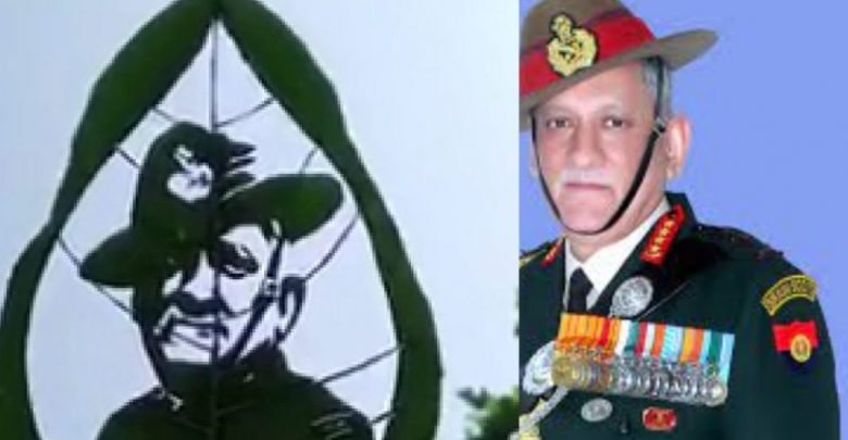 पीपल के पत्ते पर सीडीएस जनरल बिपिन रावत की तस्वीर बनाकर कलाकार ने दी अनूठी श्रद्धांजलि