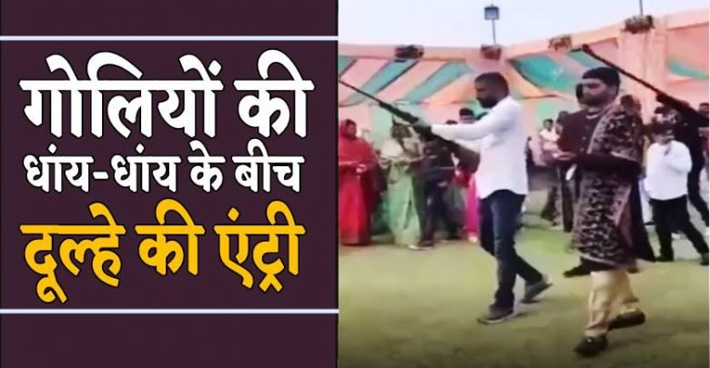 गोलियों की गूंज के साथ दूल्हा पहुंचा मंडप,दूल्हे की अनोखी एंट्री का वीडियो हुआ वायरल