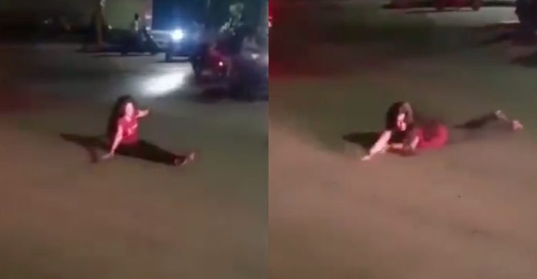 शराब पीकर लड़की ने किया सरेआम हंगामा दोस्त के साथ नशे में धुत घूम रही थी युवती