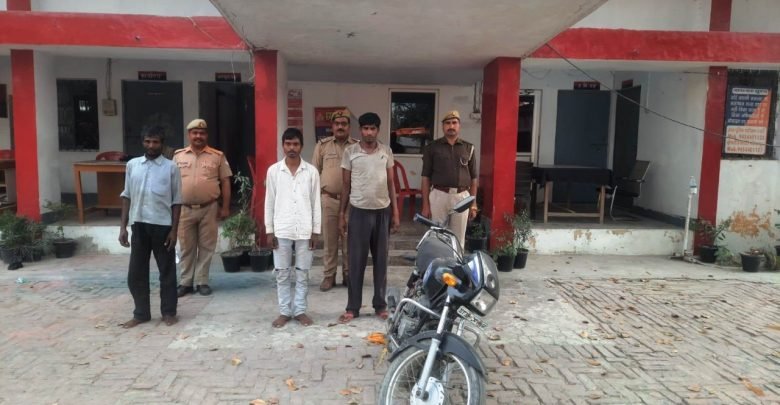 चोरी के मोटरसाइकिल के साथ तीन अभियुक्त हुए गिरफ्तार
