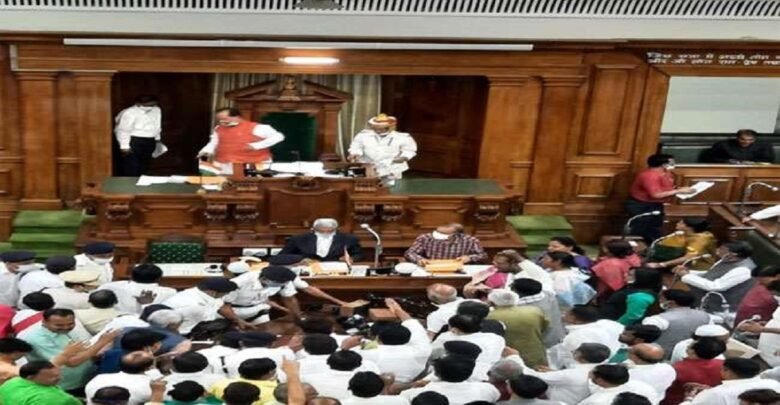 बिहार विधानसभा में विधायकों ने किया हंगामा मार्शल ने 8 विधायकों को निकाला सदन से बाहर