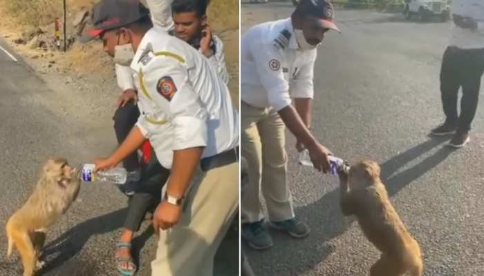 दयालु होने में कोई बुराई नहीं है, खासकर उन जानवरों के लिए जो इंसानों की तरह इंटेलिजेंट नहीं हैं. दया का ऐसा ही एक वीडियो इंटरनेट पर वायरल हो गया है जिसमें महाराष्ट्र में पुलिस प्यासे बंदरों को पानी पिलाती दिख रही है. मुंबई-अहमदाबाद मार्ग पर मालशेज घाट पर तैनात ट्रैफिक पुलिसकर्मियों को पास के जंगलों से सड़क पर निकलने वाले जानवरों को देने के लिए पानी की कई बोतलें ले जाते हुए देखा गया था.