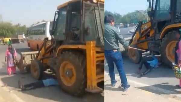 रोजी रोटी बचाने के लिए गरीब ने लगाई जान की बाजी ठेली को तोड़ा तो बुलडोजर के नीचे लेट गया शख्स