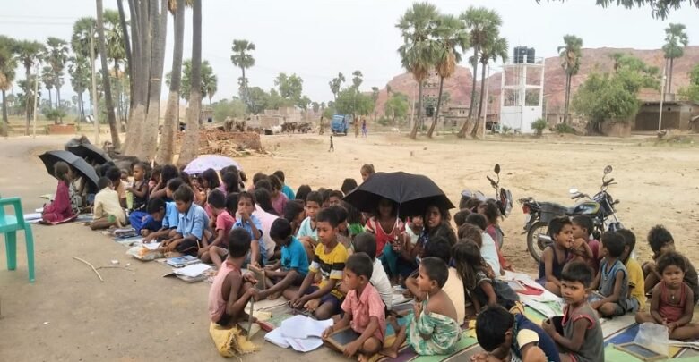 स्कूल ने खोली शिक्षा व्यवस्था की पोल ,तपती धूप में खुले आसमान के नीचे पढ़ते नज़र आए बच्चे
