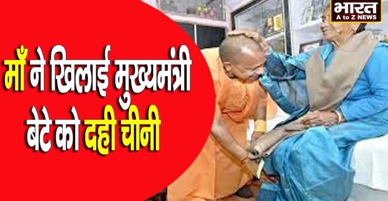 मां ने खिलाई योगी को दही चीनी आशीर्वाद लेकर लौट गए सीएम योगी