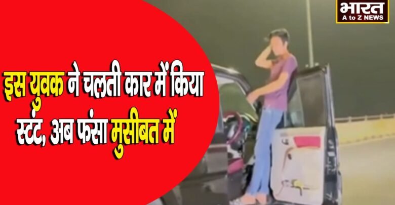 युवक ने कार के दरवाज़े पर खड़े होकर किया खतरनाक स्टंट युवक के स्टंट का वीडियो हुआ वायरल