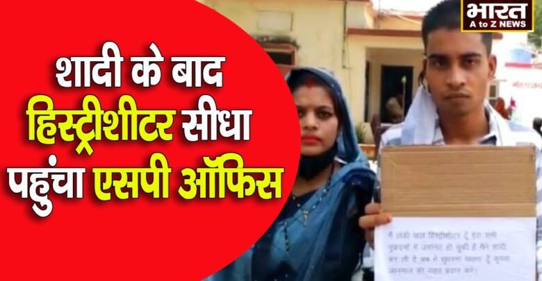 हाथ में तख्ती लेकर पत्नी के साथ एसपी ऑफिस पहुंचा हिस्ट्रीशीटर