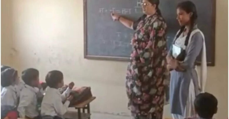केंद्रीय मंत्री ने ली बच्चों की क्लास स्मृति ईरानी ने चाक-डस्टर लेकर बच्चों को पढ़ाई हिंदी