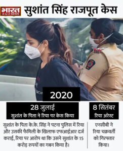 सुशांत सिंह डेथ केस में बुधवार को नारकोटिक्स कंट्रोल ब्यूरो (NCB) ने चार्जशीट दाखिल की। NCB ने कहा कि रिया ने ही सुशांत को ड्रग्स दी थीं। चार्जशीट में रिया के भाई शोविक समेत 35 लोगों को आरोपी बनाया गया है। इस केस की स्पेशल कोर्ट में 27 जुलाई को सुनवाई होनी है। अगर रिया दोषी पाई जाती हैं तो उन्हें 10 साल की जेल की सजा सुनाई जा सकती है। 14 जून 2020 को सुशांत सिंह राजपूत की बॉडी उनके मुंबई स्थित घर में मिली थीं। सुशांत की फैमिली ने रिया और उनके परिवार पर गंभीर आरोप लगाए थे। रिया और सुशांत रिलेशन में थे और लिव इन में रहते थे। सुशांत की मौत से एक हफ्ते पहले ही रिया उनका घर छोड़कर चली गई थीं। आरोपों के बाद रिया चक्रवर्ती, उनके भाई समेत कई लोग जांच के दायरे में आए। इस मामले में ड्रग्स एंगल आने के बाद NCB ने जांच शुरू की थी।