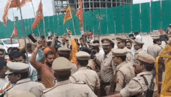 राष्ट्रीय हिंदू संरक्षक दल के अध्यक्ष आदित्य मिश्रा शनिवार दोपहर 1 बजे 12 से ज्यादा कार्यकर्ताओं के साथ लुलु मॉल पहुंचे। वे हनुमान चालीसा का पाठ करना चाहते थे। पुलिस ने उन्हें मॉल के बाहर ही रोक दिया। आदित्य ने कहा- जब मॉल के अंदर नमाज हो रही है, तो हमें हनुमान चालीसा पढ़ने से क्यों रोका जा रहा है। हमें अंदर जाने दिया जाए।