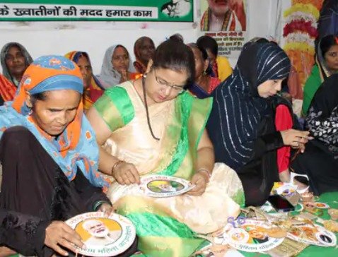 मुस्लिम महिला फाउण्डेशन एवं विशाल भारत संस्थान के संयुक्त तत्वाधान में लमही के सुभाष भवन में जुटी मुस्लिम महिलाएं बड़े मनोयोग से मोदी के चित्र वाली रखी सितारा और टिक्की के साथ बनाया। मुस्लिम महिला फाउण्डेशन की नेशनल सदर नाजनीन अंसारी ने कहा कि मोदी जी ने मुस्लिम बेटियों का ध्यान एक भाई और पिता की तरह रखा। उन्होंने कभी भेद नहीं किया।