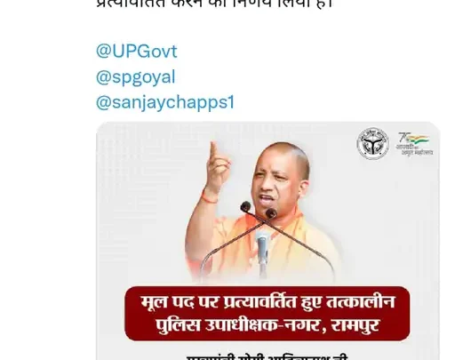 दिसंबर 2021 में विद्या किशोर शर्मा को निलंबित कर दिया गया था… CM योगी आदित्यनाथ ने विद्या किशोर के डिमोशन की जानकारी ट्वीट कर दी है… निलंबन के बाद विद्या किशोर को DGP कार्यालय से संबद्ध किया है… रामपुर में डिप्टी एसपी के पद पर तैनात रहे विद्या किशोर एक मामले में रिश्वत मांगने का गंभीर आरोप लगा… उनका वीडियो भी सोशल मीडिया पर वायरल हुआ… शर्मा अभी जालौन जिले की पीटीसी ब्रांच में तैनात हैं… विद्या किशोर शर्मा को डिमोशन के बाद निलंबित कर दिया गया है… इसके बाद शासन स्तर पर जांच कराई गई…