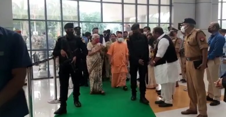 उत्तर प्रदेश की राज्यपाल आनंदीबेन पटेल और प्रदेश के मुख्यमंत्री योगी आदित्यनाथ पहुंचे