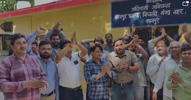 ऑनलाइन स्थानांतरण के विरोध में फूल बाग स्थित सिंचाई कर्मचारियों ने कार्यालय परिसर के बाहर नारेबाजी करते हुए विरोध प्रदर्शन किया! मिनिस्टिरियल एसोसिएशन इरीगेशन डिपार्टमेंट, उत्तर प्रदेश लखनऊ के आवाहन पर जनपद कानपुर में सिंचाई विभाग के