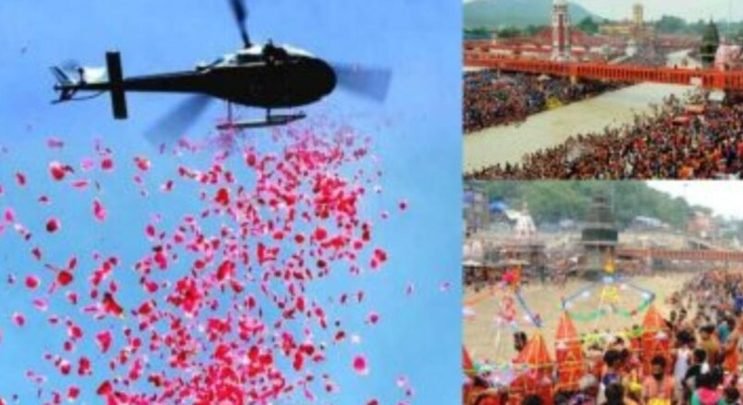 विश्वनाथ मंदिर में पहली बार हेलिकॉप्टर से हुई पुष्प वर्षा, आसमान में ये नजारा देख झूमे शिवभक्त