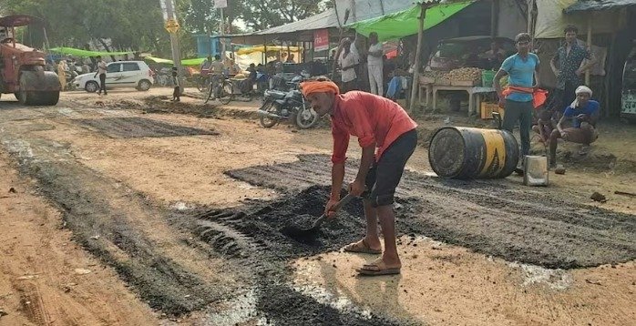 PWD विभाग ने मंत्री के आने की बात सुनते ही मिट्टी के ऊपर ही बना दी सड़क