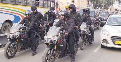बृहस्पतिवार की दोपहर करीब दो बजे एटीएस के कमांडो ने वाहनों के काफिले के साथ रिहर्सल किया। आगे-आगे बाइकों पर कमांडो, पीछे काली गाड़ियों में बैठे जवान आदि को देखने के लिए लोगों का जमावड़ा लग गया। नयाघाट से लेकर श्रीरामजन्मभूमि तक विभिन्न प्वाइंट पर रुककर जवानों ने सुरक्षा का एहसास दिलाया।