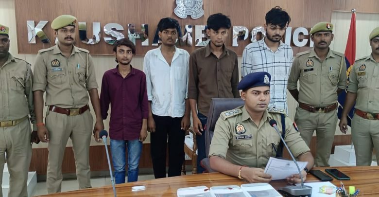 यूपी के कौशाम्बी जिले के युवकों ने दिल्ली से लौटे एक युवक को बंधक बनाकर उनके परिजनों से फिरौती मांगी,परिजनों की शिकायत पर पुलिस ने जाल बिछाया और चार युवकों को पिस्टल,कारतूस और एक बिना नंबर की कार के साथ अरेस्ट कर लिया,पुलिस ने लिखापढ़ी कर स्वयं आरोपियों को न्यायालय पेश किया,जहा से उन्हे जेल भेज दिया गया।
