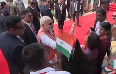 प्रधानमंत्री नरेंद्र मोदी अपने चार दिवसीय दौरे के दूसरे चरण में मालदीव पहुंचे जहां राष्ट्रपति मोहम्मद मुइज्जू ने उनका भव्य स्वागत किया। माले एयरपोर्ट पर मुइज्जू ने कैबिनेट मंत्रियों के साथ मोदी का गर्मजोशी से स्वागत किया।