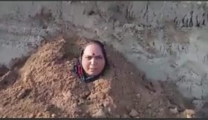 दबंग माफियाओं का पीड़ित पर दिखा खौफ पीड़ित महिला ने खेत में ली समाधि