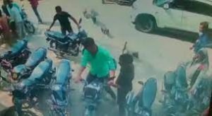 बैंक के सामने से युवक की बाइक चुराते अज्ञात चोर सीसीटीवी कैमरे में हुए हुए कैद