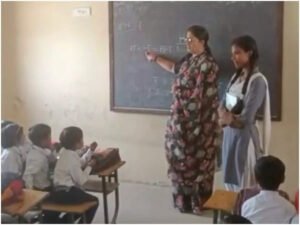 केंद्रीय मंत्री ने ली बच्चों की क्लास स्मृति ईरानी ने चाक-डस्टर लेकर बच्चों को पढ़ाई हिंदी