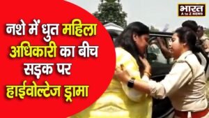 शराब के नशे में महिला अधिकारी का वीडियो हुआ वायरल बमुश्किल से महिला पुलिसकर्मी ने अधिकारी को गाड़ी में बैठाया ...