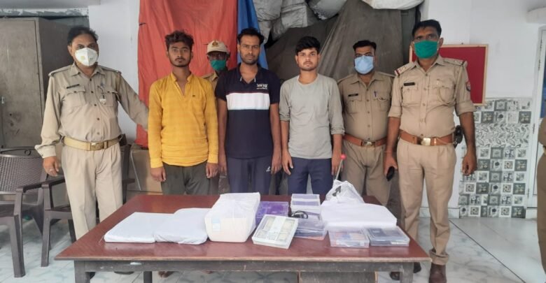 ठगों के पास से फ़र्ज़ी आधार,पैन,एटीएम,आरोग्य कार्ड समेत 1 लाख नकदी बरामद।